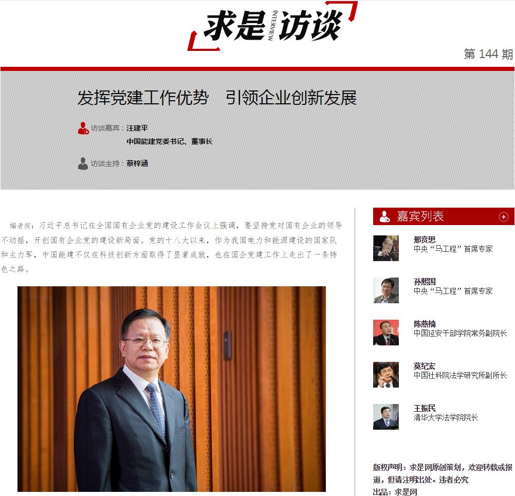 访谈嘉宾:汪建平(中国能建党委书记、董事长)